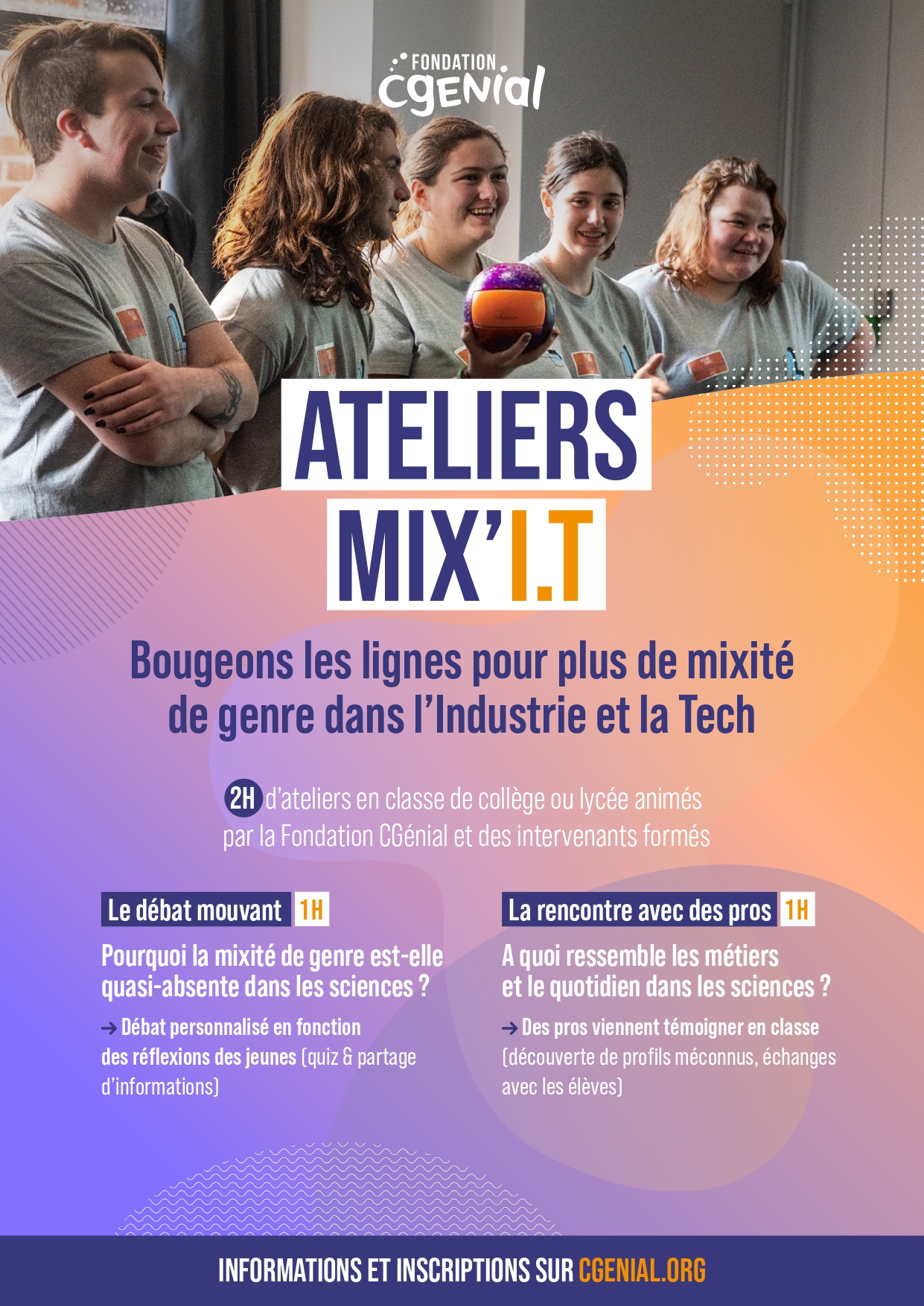 Un atelier Mix'I.T se déroule sur 2 heures et s’adresse à une classe d’élèves de collège ou de lycée (environ 30 élèves).